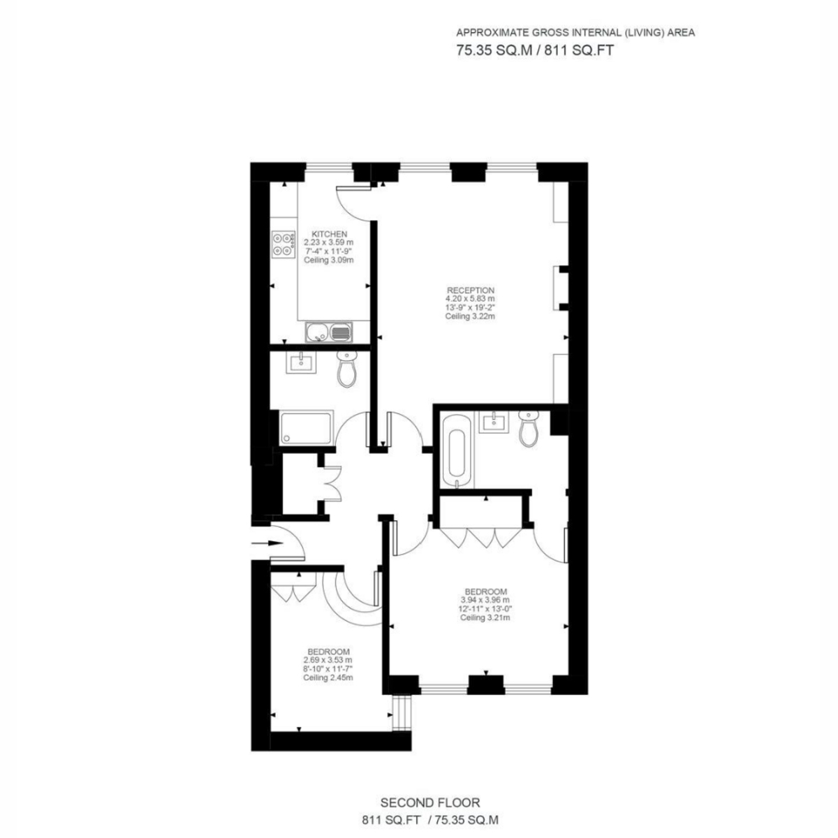 Approximate Area: 811 sq. ft