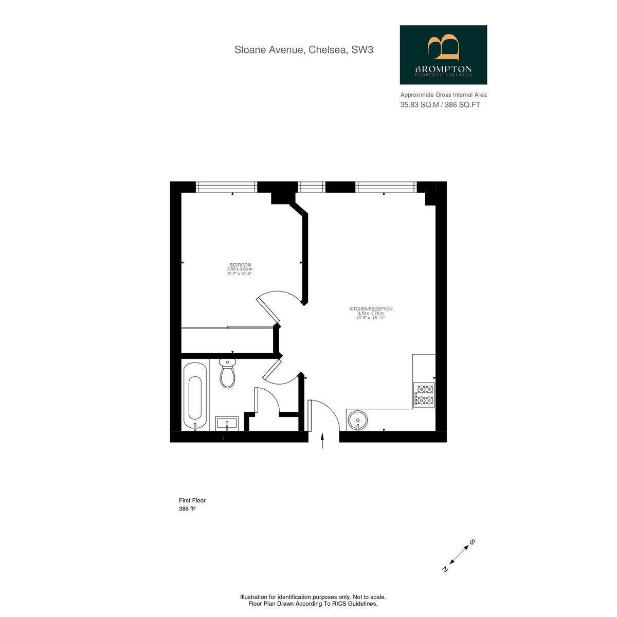 Facing south-east and flooded with natural light, this thoughtfully arranged apartment comprises an open-plan kitchen/reception room, a double bedroom with built-in storage, and a modern bathroom.