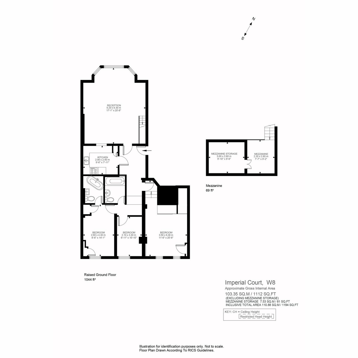The apartment comprises a grand reception room with generous ceiling heights and a mezzanine level, separate kitchen, three south facing double bedrooms and two bathrooms (one en-suite).