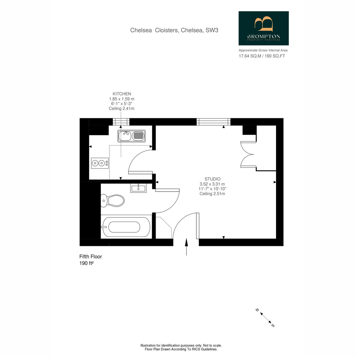 A well-laid-out fifth-floor studio flat, quietly positioned in this sought-after portered block in the heart of Chelsea. The flat offers a bright and welcoming studio room with built-in storage, a separate kitchen, and a bathroom.