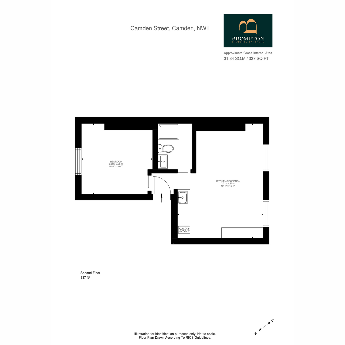 The property features a spacious open-plan kitchen and lounge with a south-west aspect, giving the main living area excellent natural light. The flat includes a well proportioned double bedroom and a modern bathroom, all finished to a high standard. Perfectly located just a short walk from Camden Town station, placing you close to the area’s vibrant shops, cafés and transport links.